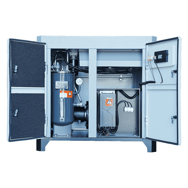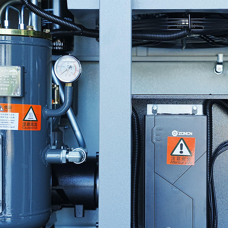 O design do compressor de estágio único de micro-óleo de micro-óleo de 20 HP oferece flexibilidade na configuração. fabrica o compressor com uma arquitetura estrutural e elétrica que acomoda configurações de frequência fixa e de frequência variável. O motor síncrono de ímã permanente oferece desempenho consistente em qualquer modo devido às suas características inerentes de saída de torque estável e baixo aumento de temperatura. Além disso, a conexão direta 1:1 entre o motor e o compressor de parafuso permite que o sistema faça a transição eficiente entre versões de frequência fixa e variável durante a produção ou instalação. Os caminhos do circuito de óleo, os sistemas de resfriamento projetados para dissipação de calor confiável e a configuração de lubrificação com micro-óleo permanecem eficazes independentemente da seleção de frequência. Isto permite que os usuários instalem o compressor em ambientes onde a escolha da frequência depende do planejamento operacional, orçamento de energia ou padrões de fluxo de trabalho.