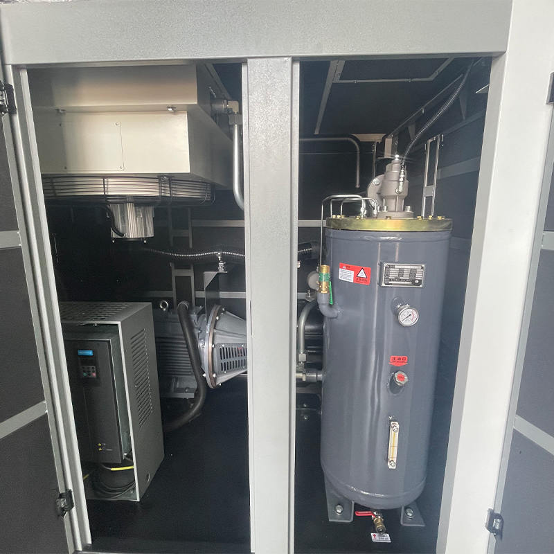 A compactação em dois estágios afeta os níveis de ruído ao distribuir a carga de trabalho de compactação em dois estágios separados. Para o compressor de parafuso duplo micro-óleo de 100 HP, o gás é comprimido gradualmente, em vez de em uma única etapa de alta pressão, reduzindo a intensidade das flutuações de pressão interna. Níveis de flutuação mais baixos resultam em um processo de compressão mais suave e menos geração de ruído causado por mudanças bruscas de pressão. O perfil do rotor, otimizado para reduzir vazamentos e melhorar a eficiência da vedação, também influencia o comportamento acústico interno. Com turbulência reduzida e padrões de fluxo de ar estáveis, o compressor produz menor ruído aerodinâmico. Este ciclo de compressão equilibrado suporta perfis sonoros consistentes durante a operação a longo prazo, benéfico para ambientes industriais onde se espera atividade contínua do equipamento.